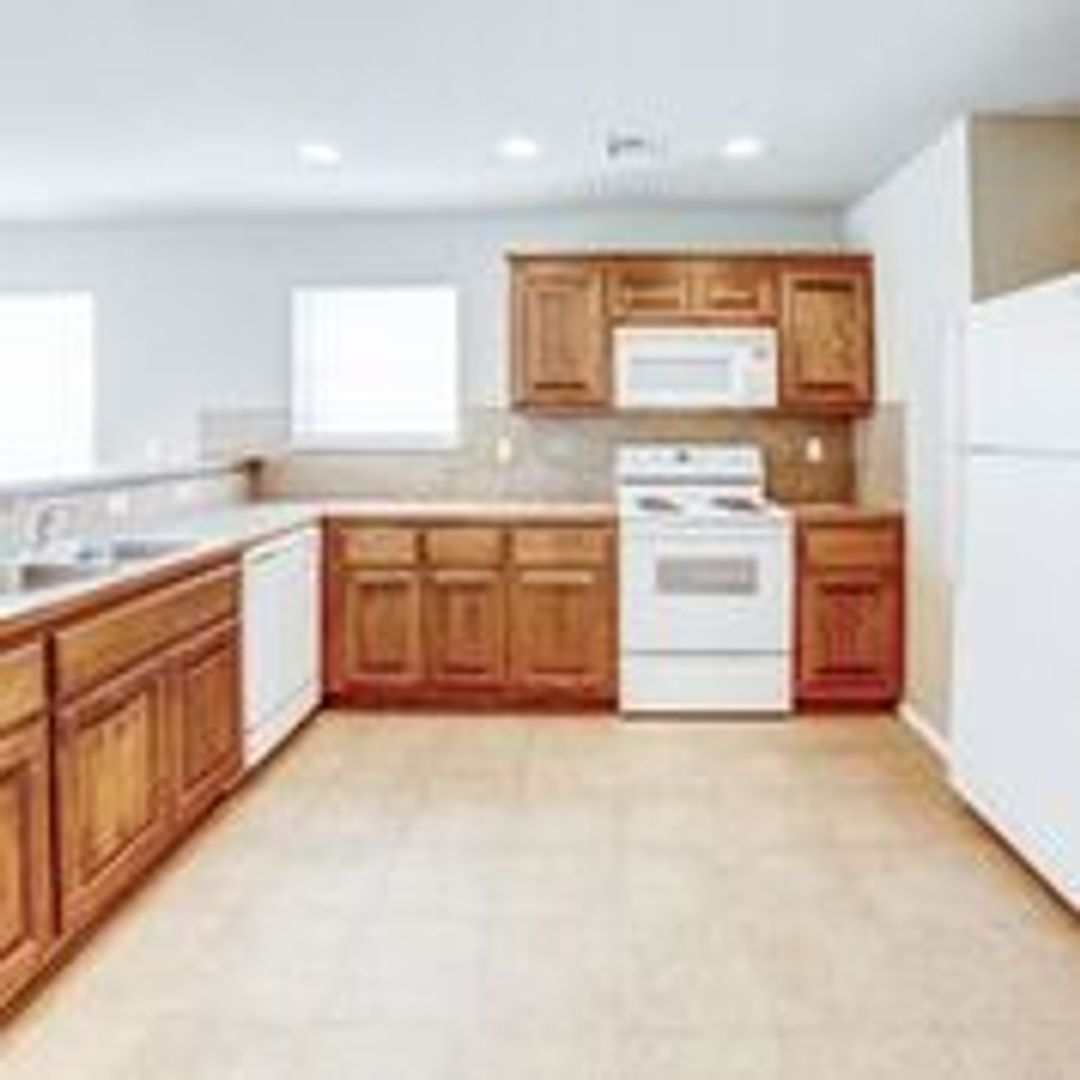 This charming 2-bedroom, 1-bathroom is one of our most popular units with an attached single car garage + your own yard! No more tenants upstairs or carrying your groceries through the parking lot in the rain or snow! The open floor plan features a large kitchen with a breakfast bar area and pantry, perfect for entertaining guests. The spacious bathroom includes a double vanity + lots of extra storage. Full-size washer/dryer hookups are in every home. Don't miss out on the opportunity to call this well-maintained community yours!